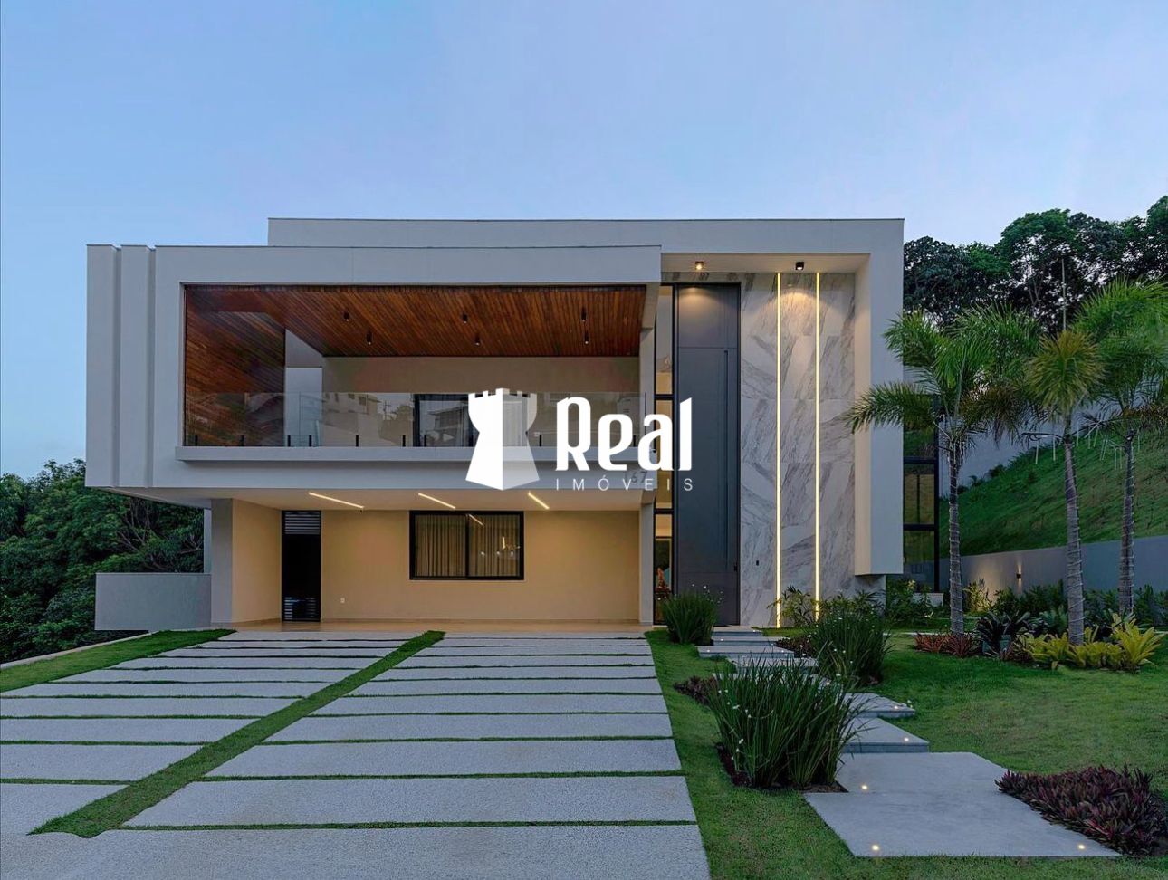 Com 715 m² de área construída, casa com total privacidade, finamente decorada, com pé direito duplo, home theater, sala de jantar e estar amplas, 2 lavabos, brinquedoteca, adega, quartos climatizados, com móveis planejados da Bahia Closet, área gourmet com churrasqueira e área de sauna integrada a piscina e sistema de câmeras internas e externas.